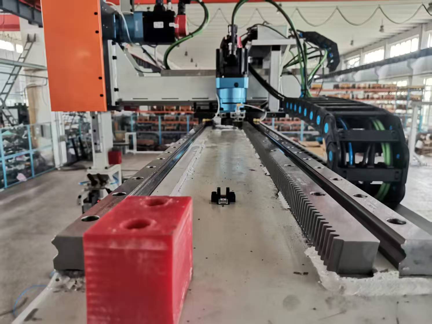 横梁长度可达10米以上,可横跨两台机床